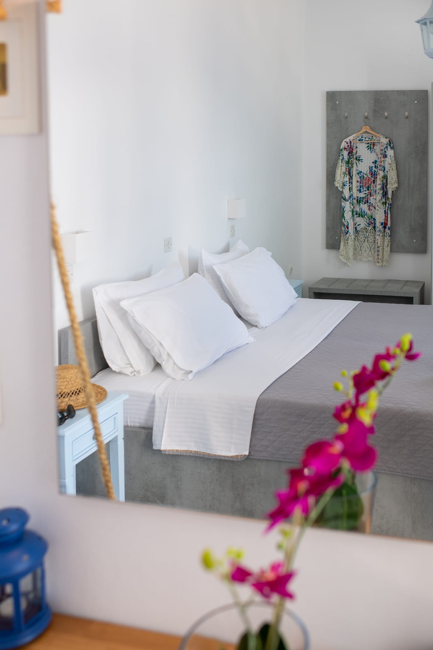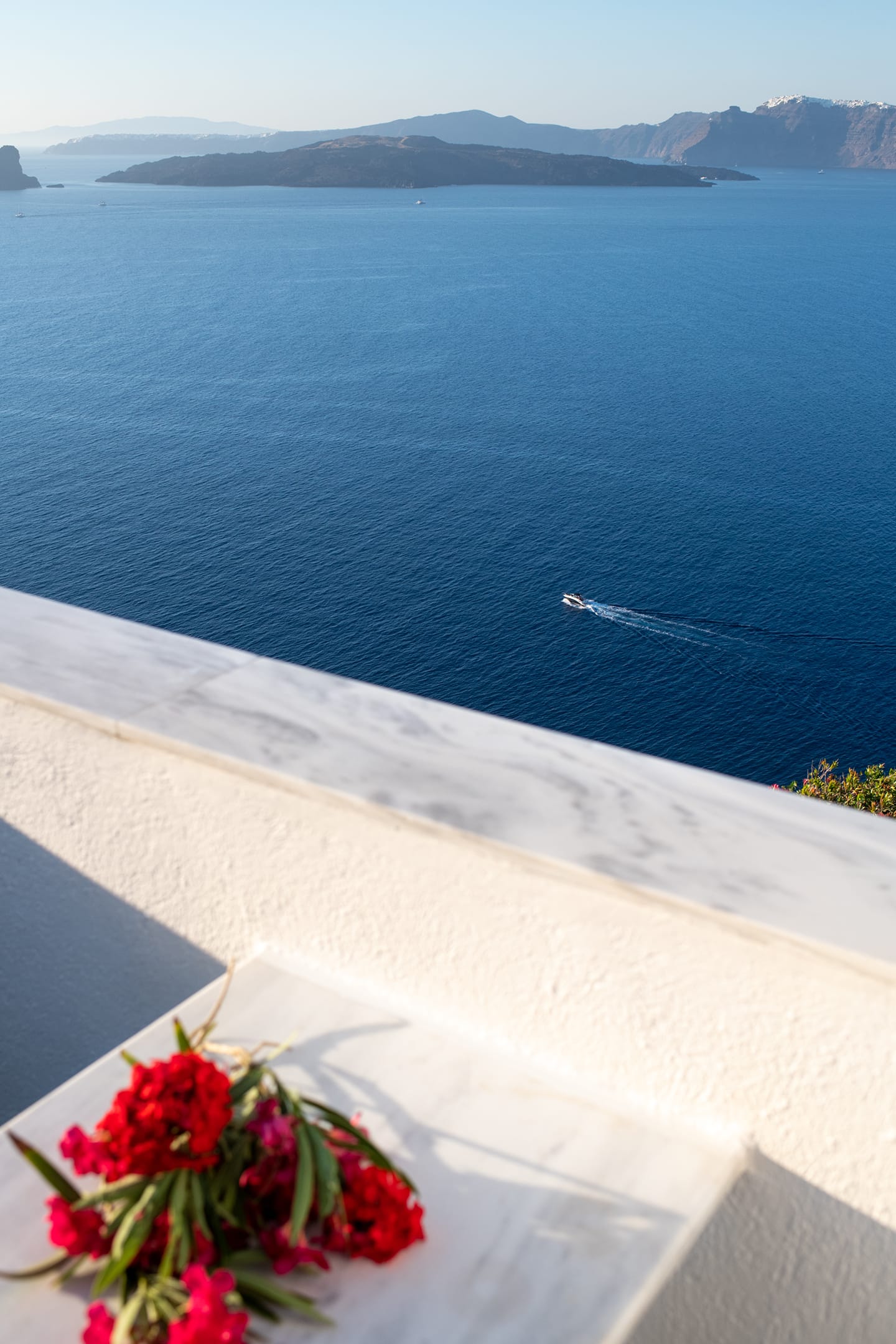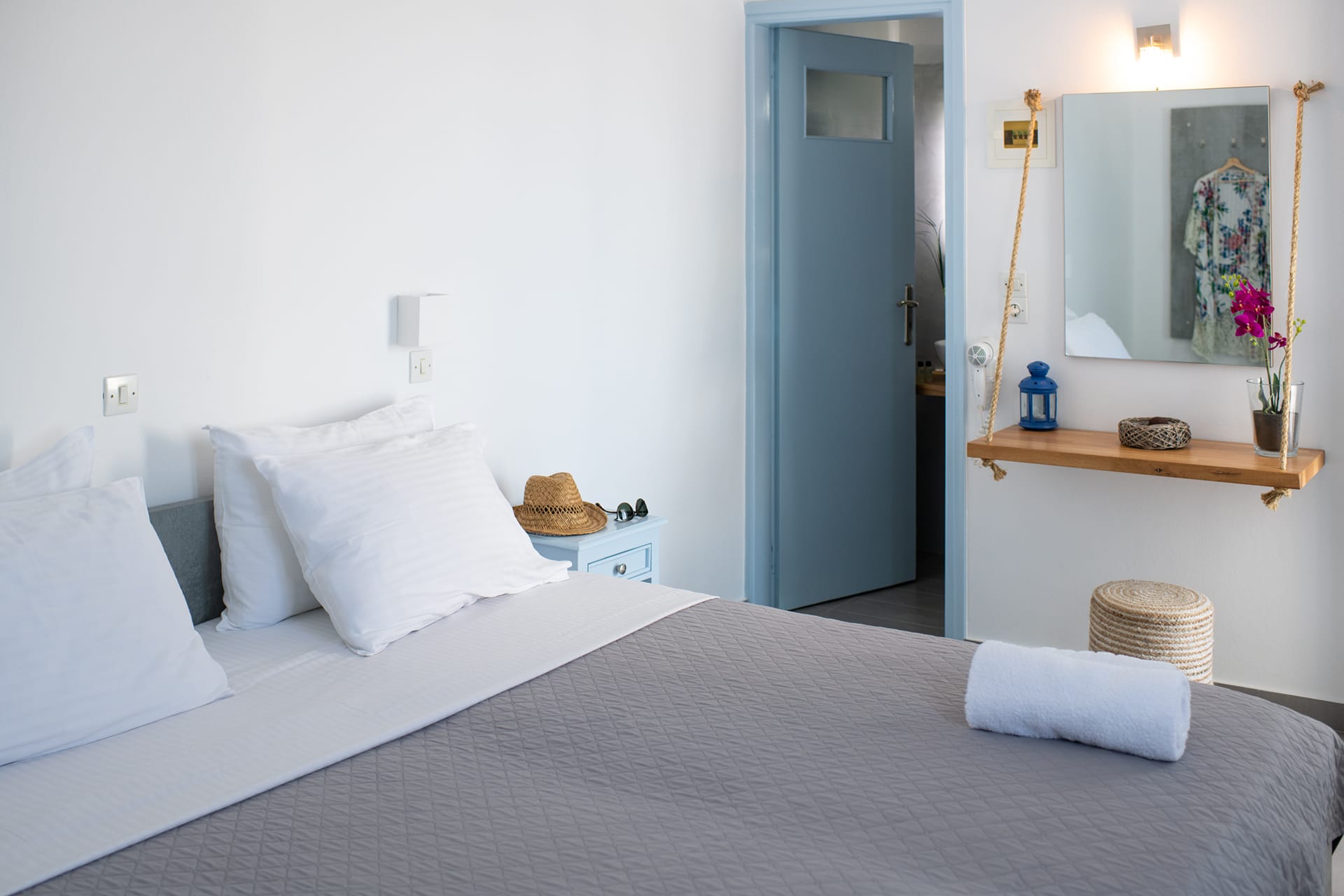 Bright, airy, and refined, this room features uninterrupted caldera views and modern comforts. A stylish choice for guests who want to enjoy Santorini’s iconic scenery from the privacy of their room.